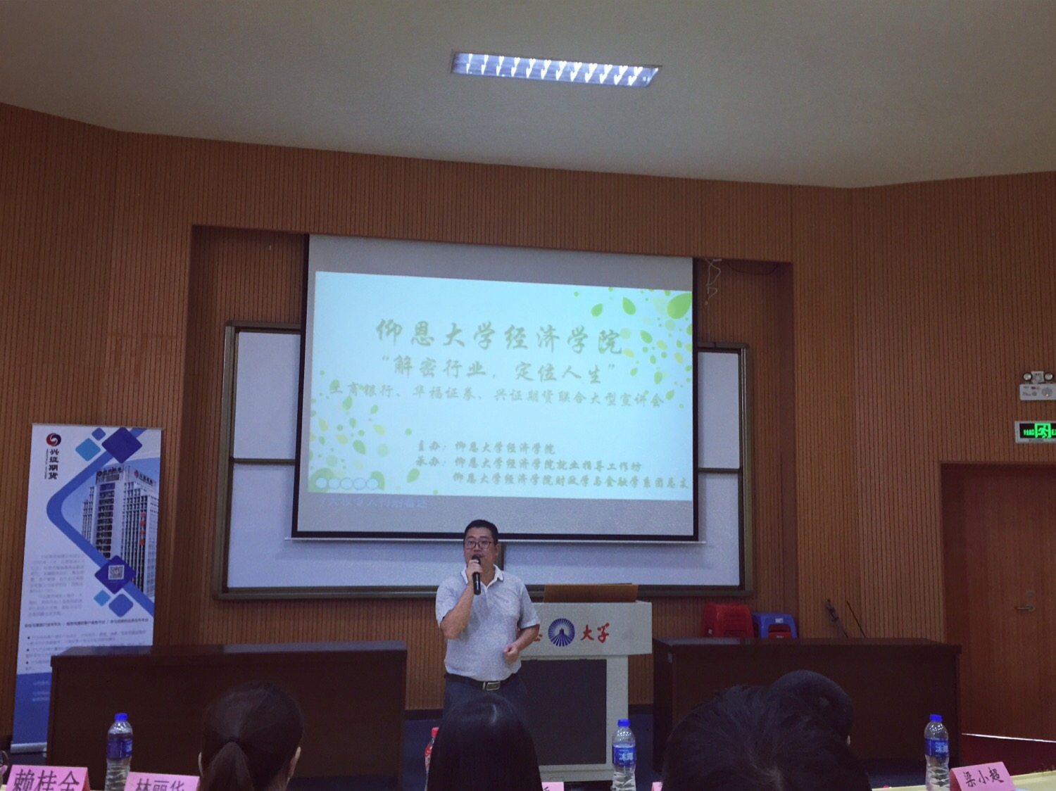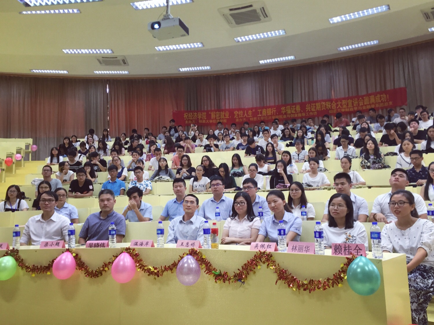 9月20日14点30分,“解密就业,定位人生”大型宣讲会在新区和昌楼惟勤讲堂举行。WilliamHill中文官方网站党总支书记兼副院长吴晓伟、中国工商银行指挥巷支行副行长温海岸、WilliamHill中文官方网站党总支副书记林丽华、WilliamHill中文官方网站就业指导工作坊指导老师赖桂全出席,华福证券泉州湖心街营业部总监助理许振灵等嘉宾到场,WilliamHill中文官方网站14、15级全体学生参加。