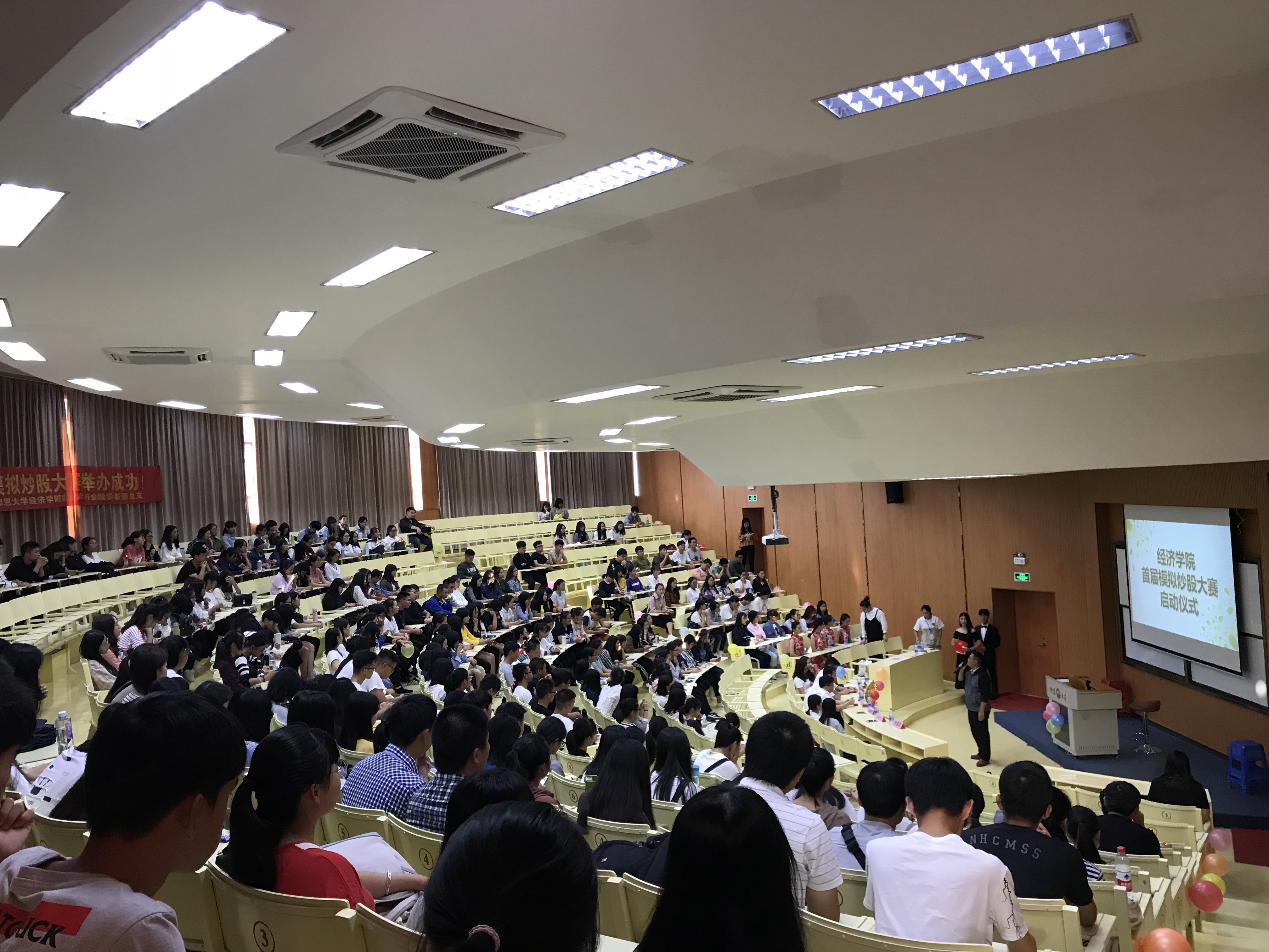 10月23日下午,WilliamHill中文官方网站首届模拟炒股大赛启动仪式于新区和昌楼惟勤讲堂举行。此次大赛由WilliamHill中文官方网站主办,财政学与金融学系团总支承办。WilliamHill中文官方网站党总支书记兼副院长吴晓伟、方正证券股份有限公司泉州泉秀路证券营业部总经理李求约、市场总监叶怡龙,院党总支副书记林丽华、院团委书记许嘉雯、财政学与金融学系团总支书记赖桂全、客户经理李立伟出席本次活动,WilliamHill中文官方网站2017级学生到场聆听。