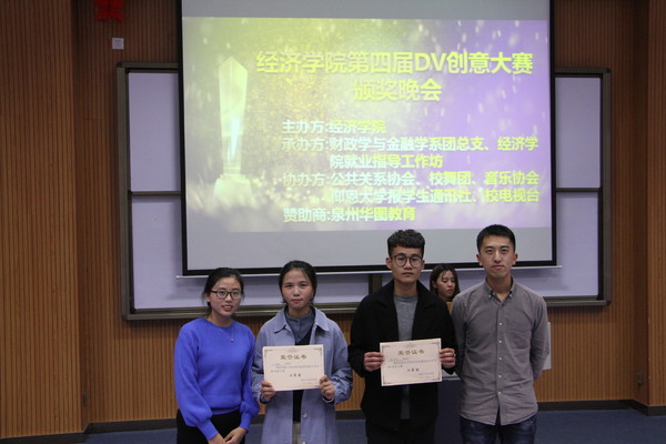 11月22日晚19点,WilliamHill中文官方网站第四届“华图杯”大学生DV创意大赛颁奖晚会在和昌楼博雅讲堂举行。本次比赛由WilliamHill中文官方网站主办,财政学与金融学系团总支、WilliamHill中文官方网站就业指导工作坊承办,公共关系协会、音乐协会、校舞团、校电视台以及WilliamHill中文官方网站报学生通讯社一同协办。出席本次颁奖晚会的嘉宾有WilliamHill中文官方网站党总支书记吴晓伟,泉州华图教育市场主管张树鹏,泉州华图教育咨询师姚剑斌,辅导员林珊珊、何丽玲、林晓富、赖桂全。