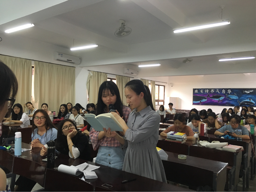活动伊始,主持人以一番热情洋溢的开场白拉开了活动序幕。在活动的第一个环节中,支部干事通过播放幻灯片的方式,将有关“读书”的相关内容娓娓道来。紧接着党员、积极分子纷纷上台推荐好书,并分享自己对读书的心得体会。活动的第三个环节,主持人向大家介绍一款“有书”公众号且呼吁大家关注该公众号,此公众号内容丰富,推送时下优秀书籍,呼吁同学们从书籍中汲取知识的精华,以此充实自己。活动的最后,由支部干事对此次活动作了总结,她鼓励大家多阅读经典名著并领会书中的真谛,开阔视野,增长见识,她还倡导大家积极融入“读好书、好读书、读书好”的氛围中,提高自身的人文素质,完善自我。