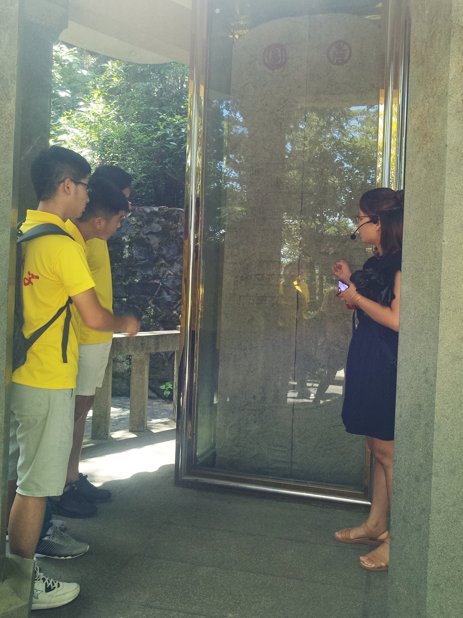 (图为导游向实践队员介绍清水岩概况)