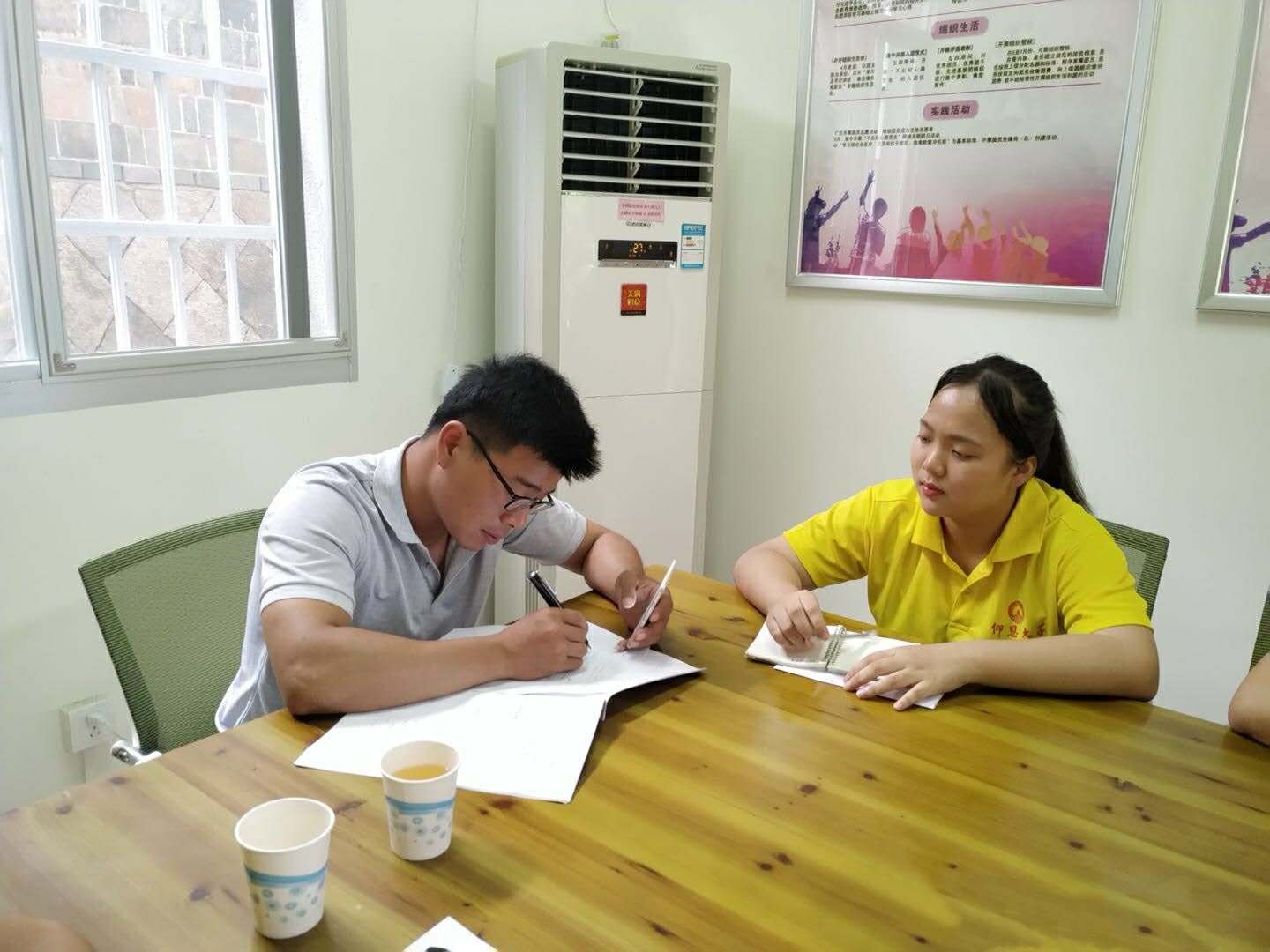(图为王主任与实践队探讨工作)