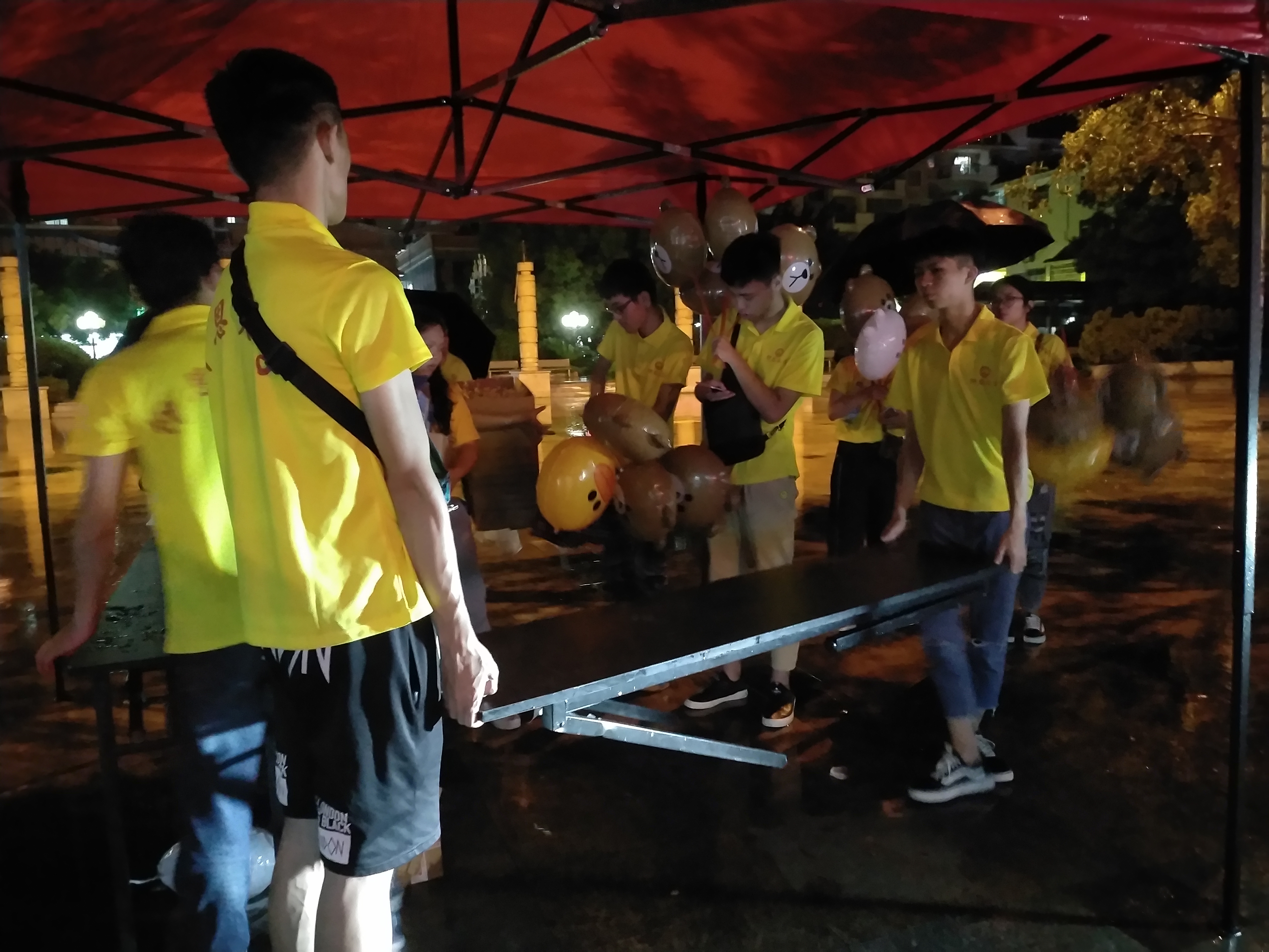 由于天气原因,实践队将义卖分为两次进行。前期,准备了动物图案的气球以及各式各样的干花。实践队进行分工,男生搭帐篷、搬运桌子以及为气球充气,女生进行干花的裁剪,以及气球的固定。实践队租了音响和麦克风,在音乐的感染力下,吸引了不少的群众围观和购买义卖商品。在得到每一笔善款时,实践队都会告知买者,筹募的资金将用来转换物资,慰问当地的贫困户。义卖结束后,实践队到“不舍客栈”进行义工,帮忙打扫楼梯和擦扶梯。同时,实践队员为旅客讲解了当地的旅游地点及特色。