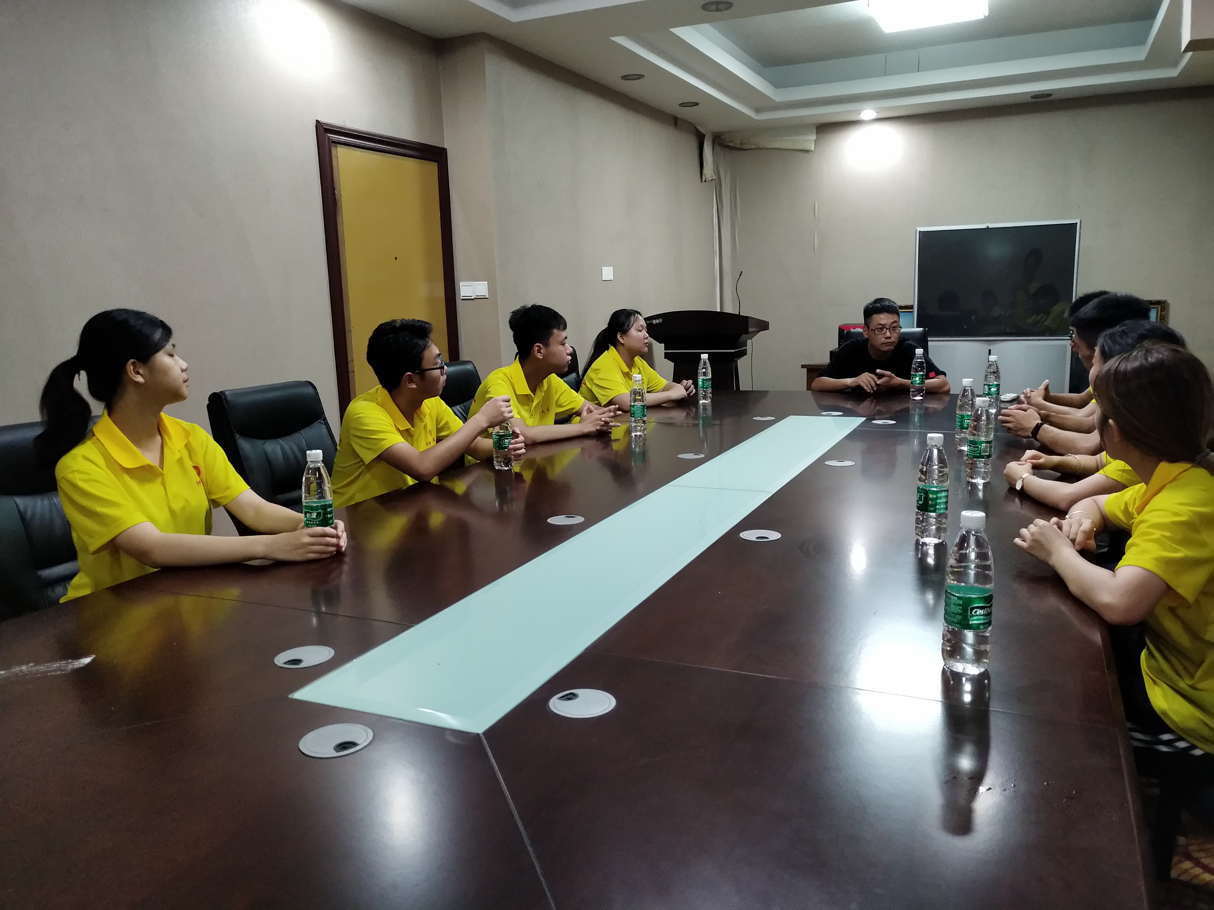 (图为实践队与三沙红十字义工服务团副会长江进行交流)
