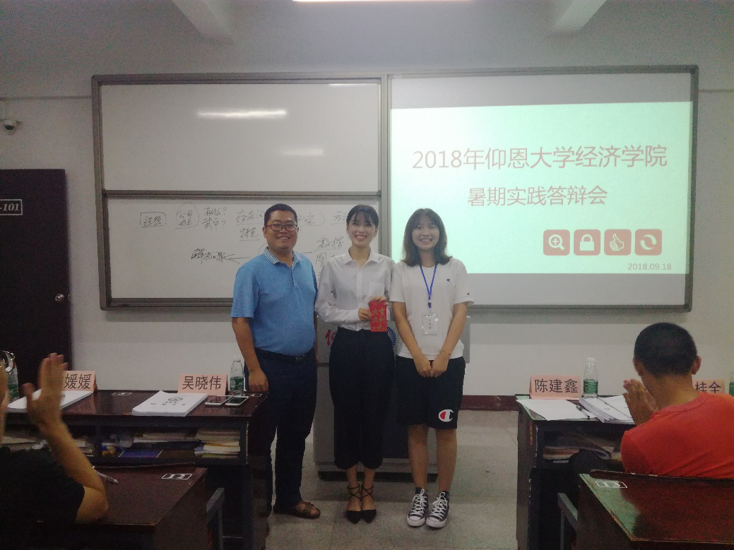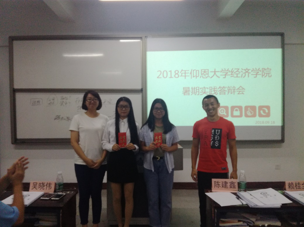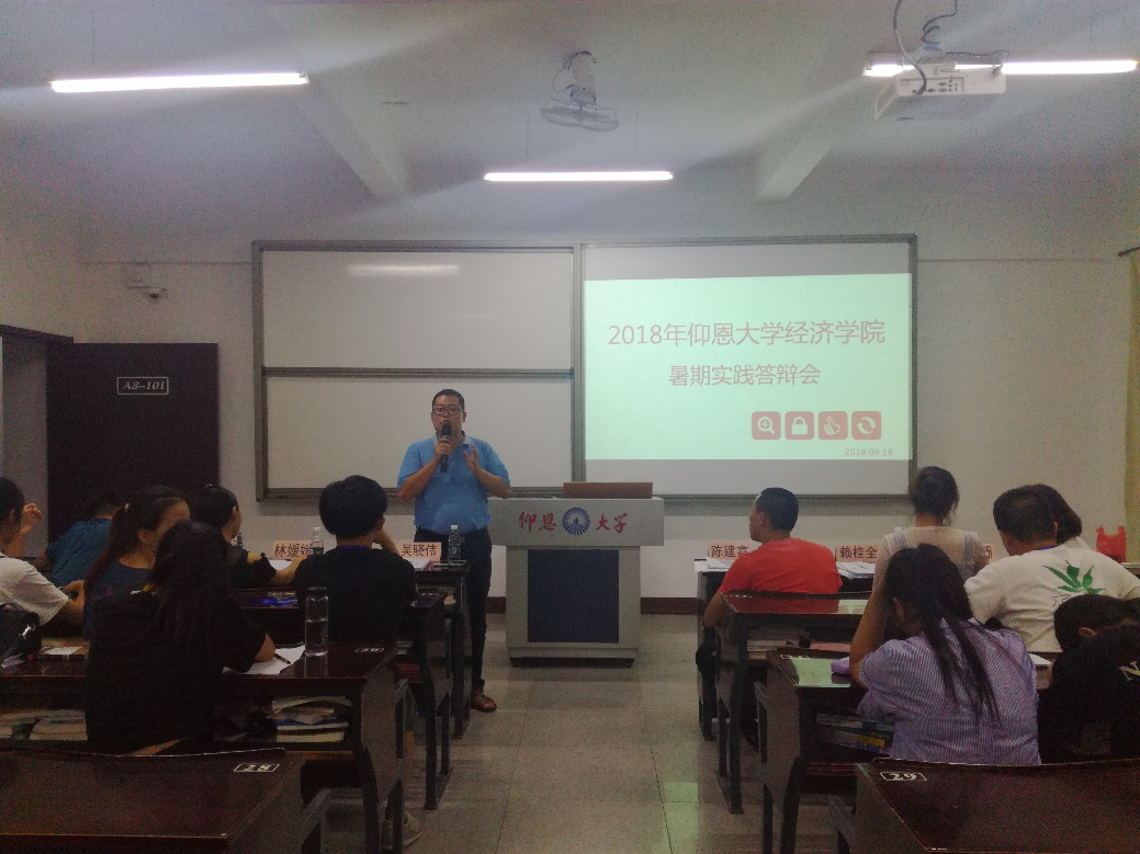 9月18日晚7时,WilliamHill中文官方网站2018年度暑期社会实践活动答辩会于仰恩楼A3-101室顺利举办。出席并担任本次大会评委的有学院党总支书记副院长吴晓伟、学院团委书记陈建鑫、学院学生会指导老师林珊珊、学院就业指导工作坊指导老师赖桂全、经贸系党总支部书记林晓富及学院学务秘书林媛媛。