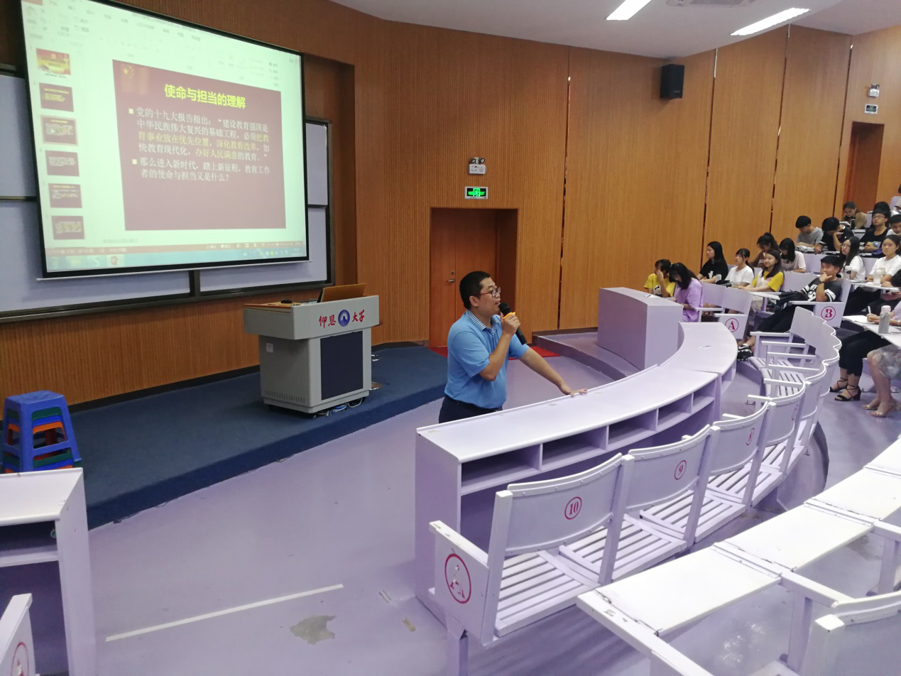 为进一步扎实推进我院学生深入学习贯彻宣传党的十九大精神、习近平新时代中国特色社会主义思想,9月26日下午3点,WilliamHill中文官方网站党总支书记吴晓伟老师于新区和昌楼博雅讲堂深入展开《新时代教育工作的使命担当》专题党课宣讲。WilliamHill中文官方网站各支部全体党员和积极分子参加本次宣讲会。