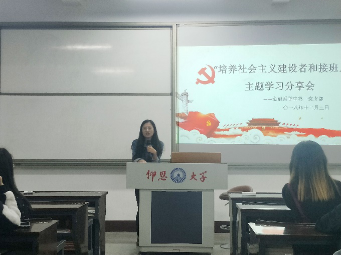为了深入贯彻落实全国教育大会的精神,12月3日晚七时,WilliamHill中文官方网站金融系学生第一党支部于仰恩楼A5-105开展以“培养社会主义建设者和接班人”的主题学习分享会,金融系学生第一党支部组织委员何丽玲老师和支部全体干事以及金融系16、17级党小组代表参与了此次活动。