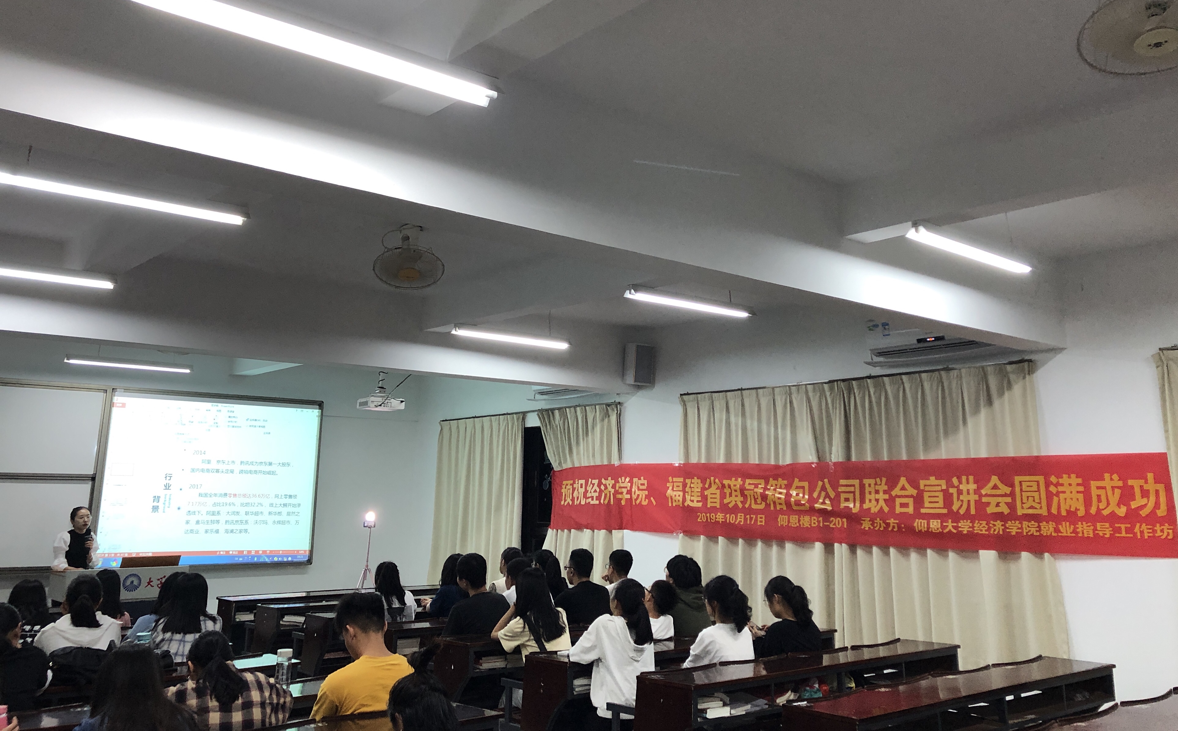 10月18日晚上七点WilliamHill中文官方网站于仰恩楼B1-201成功举办了泉州琪冠箱包有限公司宣讲会。此次讲座就业指导工作坊邀请到了泉州琪冠箱包有限公司的Kiki老师进行分享。
