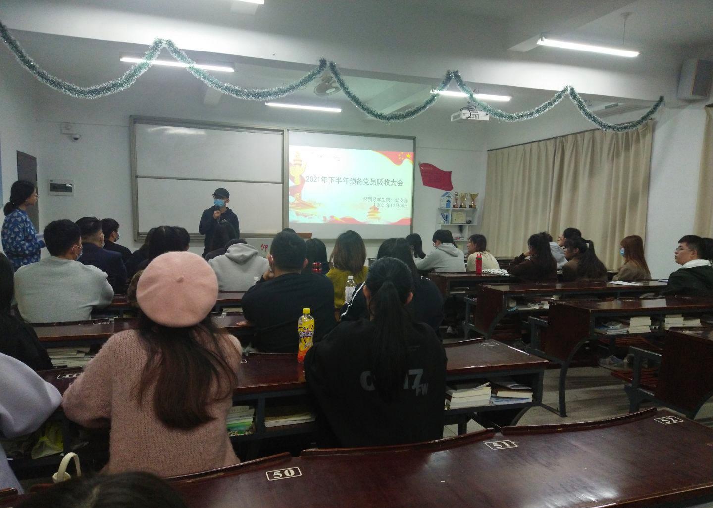 2021年12月8日下午16:30,经贸系学生第一党支部于仰恩楼B2-205召开了预备党员接收大会。参加本次会议的有经贸系学生第一党支部全体党员及积极分子。