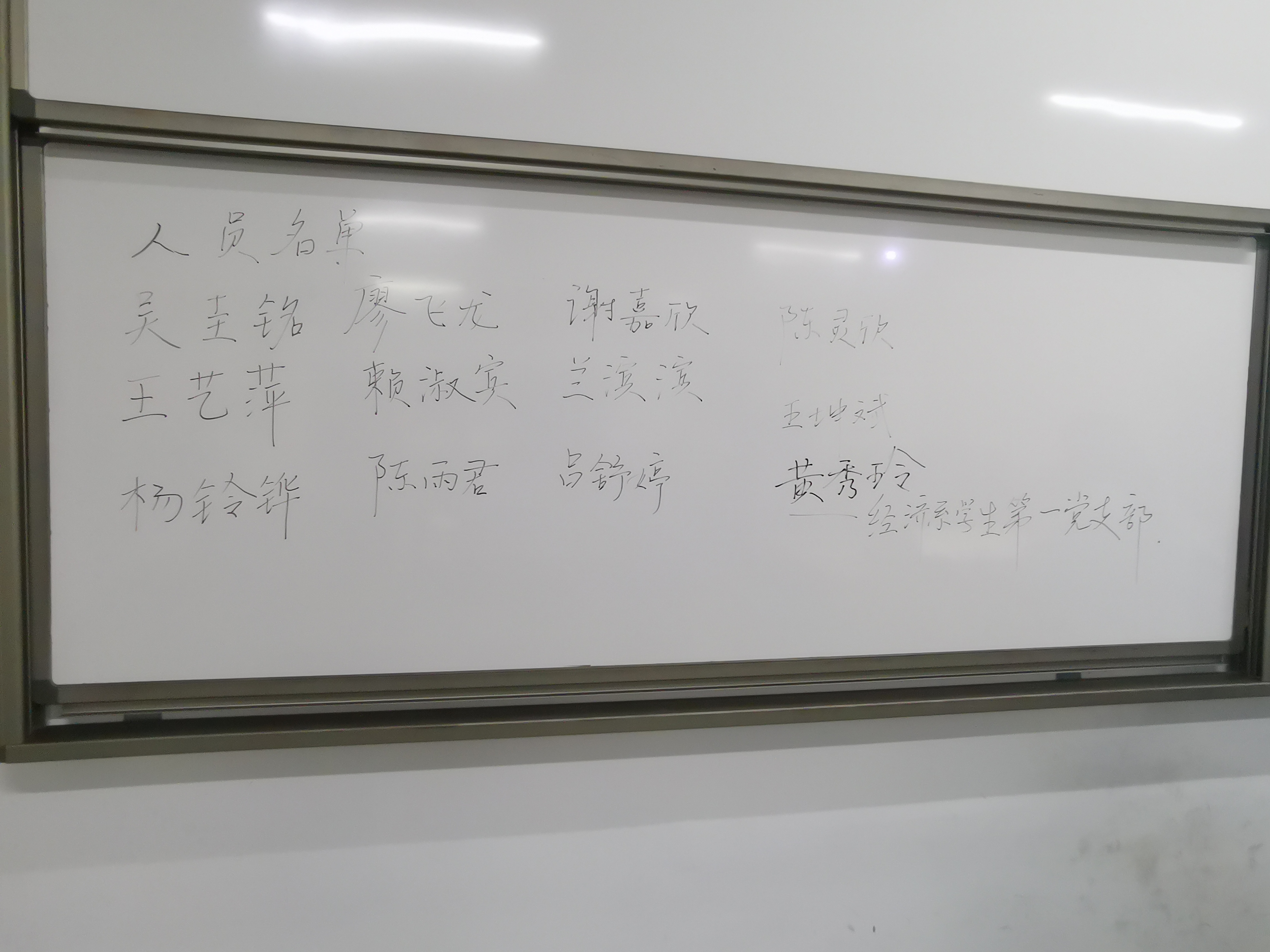 图2 支部此次预备党员接收对象公示名单 此次预备党员接收大会,经济系学生第一党支部共吸收接纳了吴圭铭等12名同志成为中共预备党员。最后,支部书记赖桂全老师对此次大会进行了总结,她指出我们党员同志要努力学习党史文化,不断提高自己的能力,不断加强为人民群众服务的意识,做好先锋模范作用,为我们党的伟大事业奉献自己的一份力量。(经济系学生第一党支部/图文)
