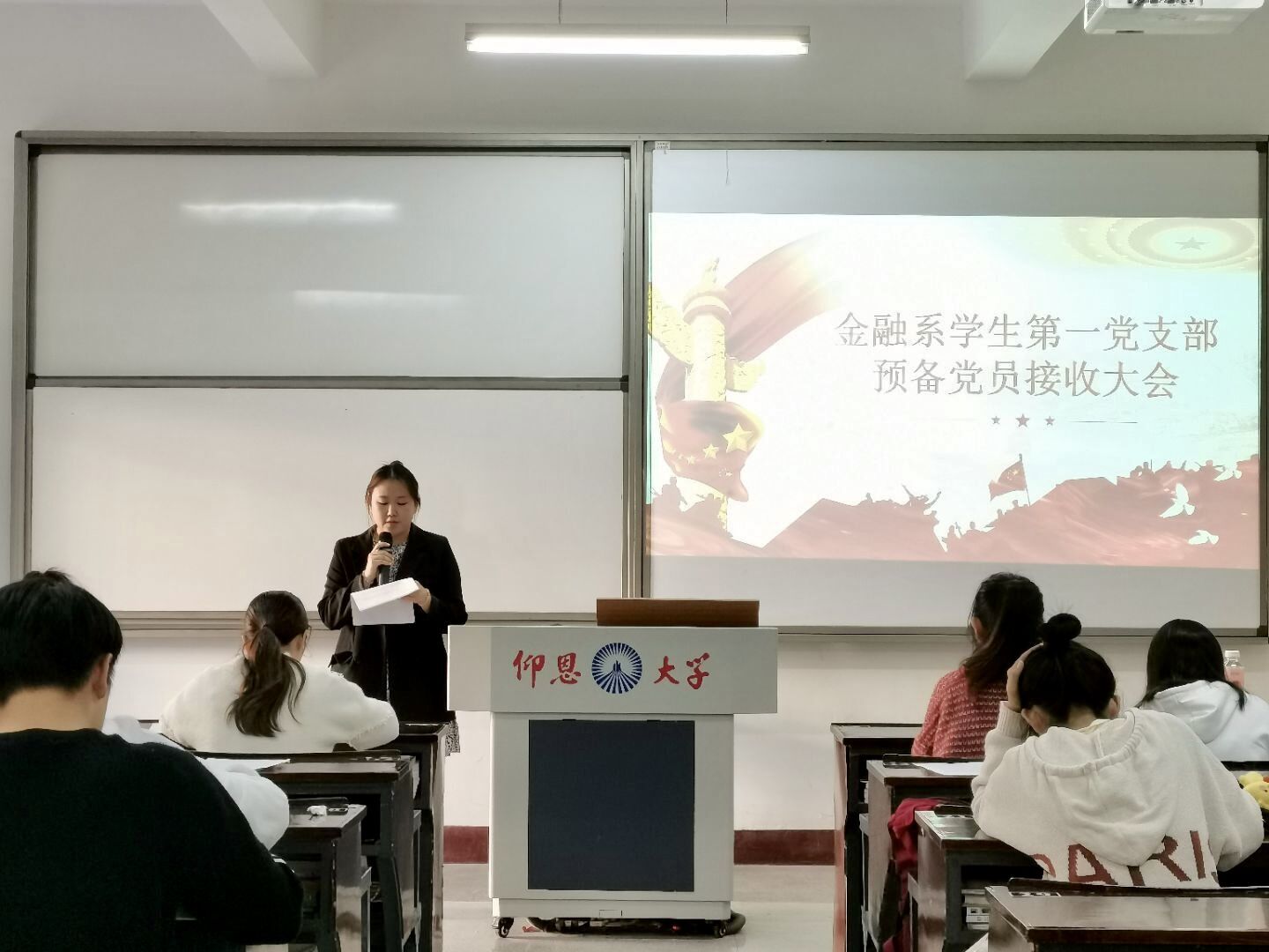 此次预备党员接收大会顺利召开,为支部注入新血液,进一步扩大了党员队伍。相信在党支部的带领下,全体党员同志将拥护党的纲领,遵守党的章程,履行党员义务,坚定理想信念,坚持以自身的实践行动为党奉献。(金融系学生第一党支部/图文)