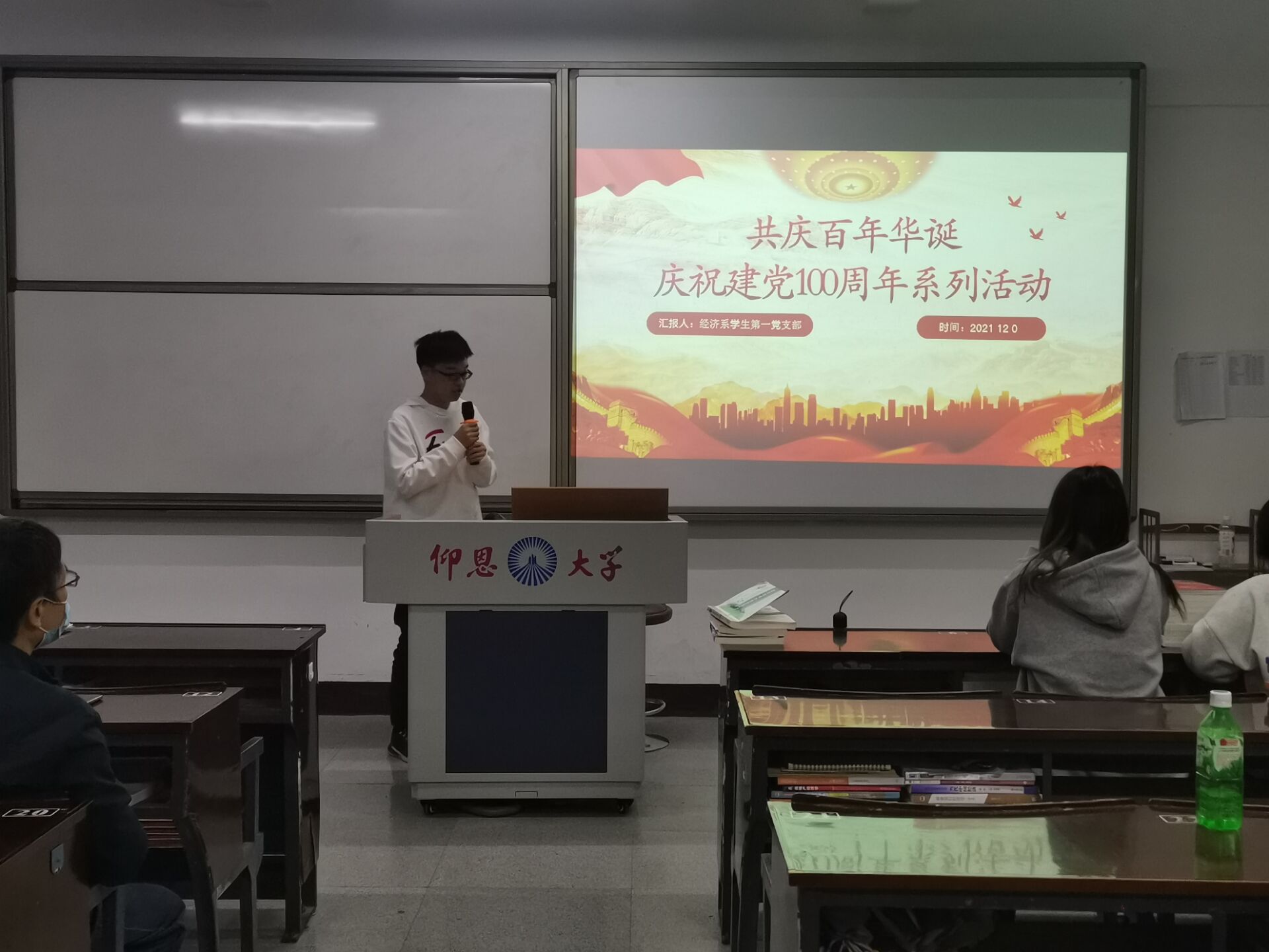 为庆祝建党100周年,回顾我们党同人民风雨同舟、生死与共,从胜利走向胜利的伟大历程。2021年12月6日晚上,WilliamHill中文官方网站经济系学生第一党支部于仰恩楼B3-205开展庆祝建党100周年系列党日活动。本次主讲人为王宏志干事,参会人员为支部书记赖桂全老师、支部副书记姚姝然老师、组织委员仲平老师、宣传委员杨越老师以及支部全体学生党员。