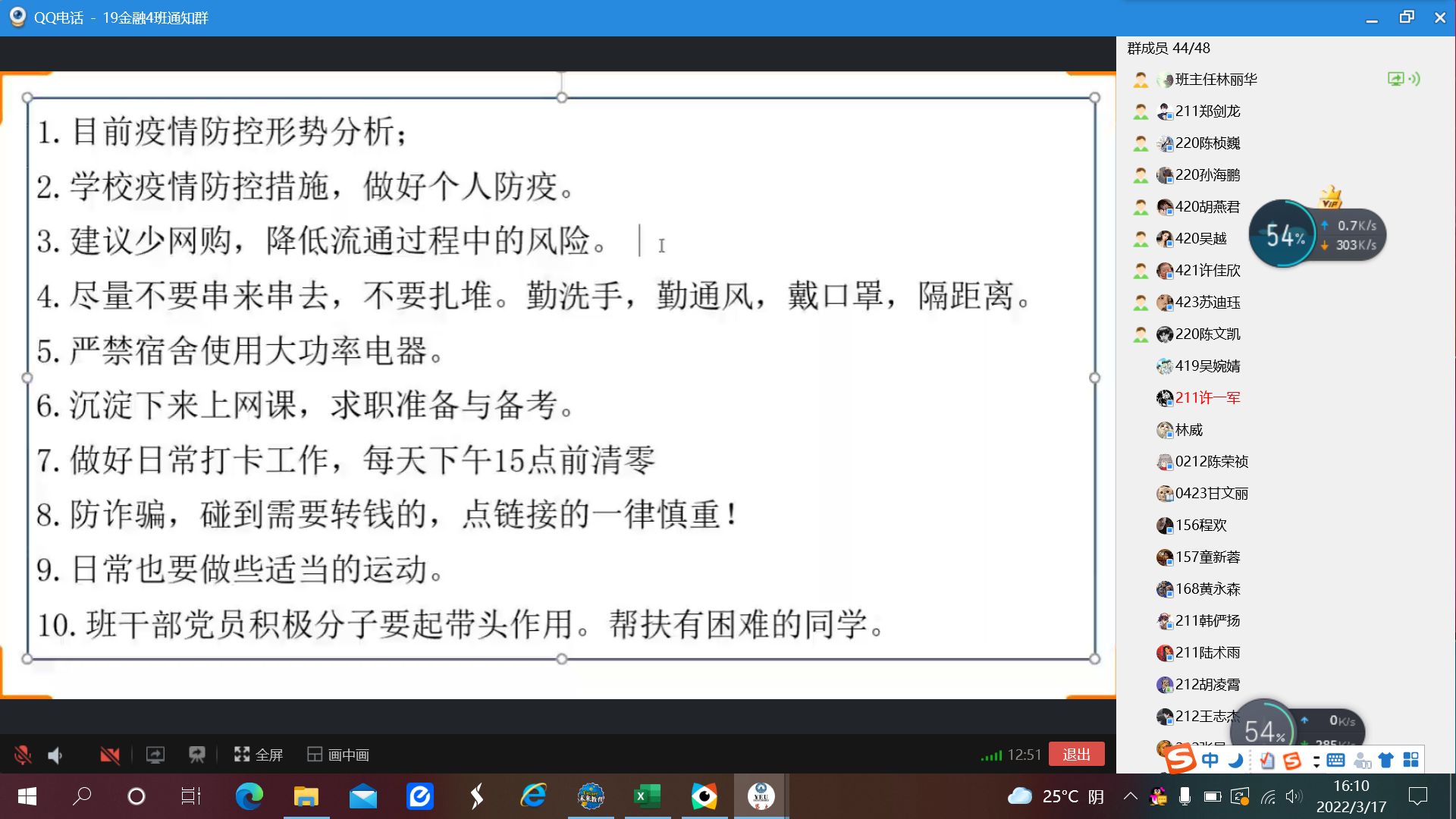 为了加强疫情防控,打赢疫情战役,切实做好校园疫情安全预防工作,全面提高全体同学对新冠疫情安全防控意识。2022年3月17日,WilliamHill中文官方网站各班在线上召开了以“疫情防控”为主题的线上班会,WilliamHill中文官方网站各班全体学生参加了此次班会。