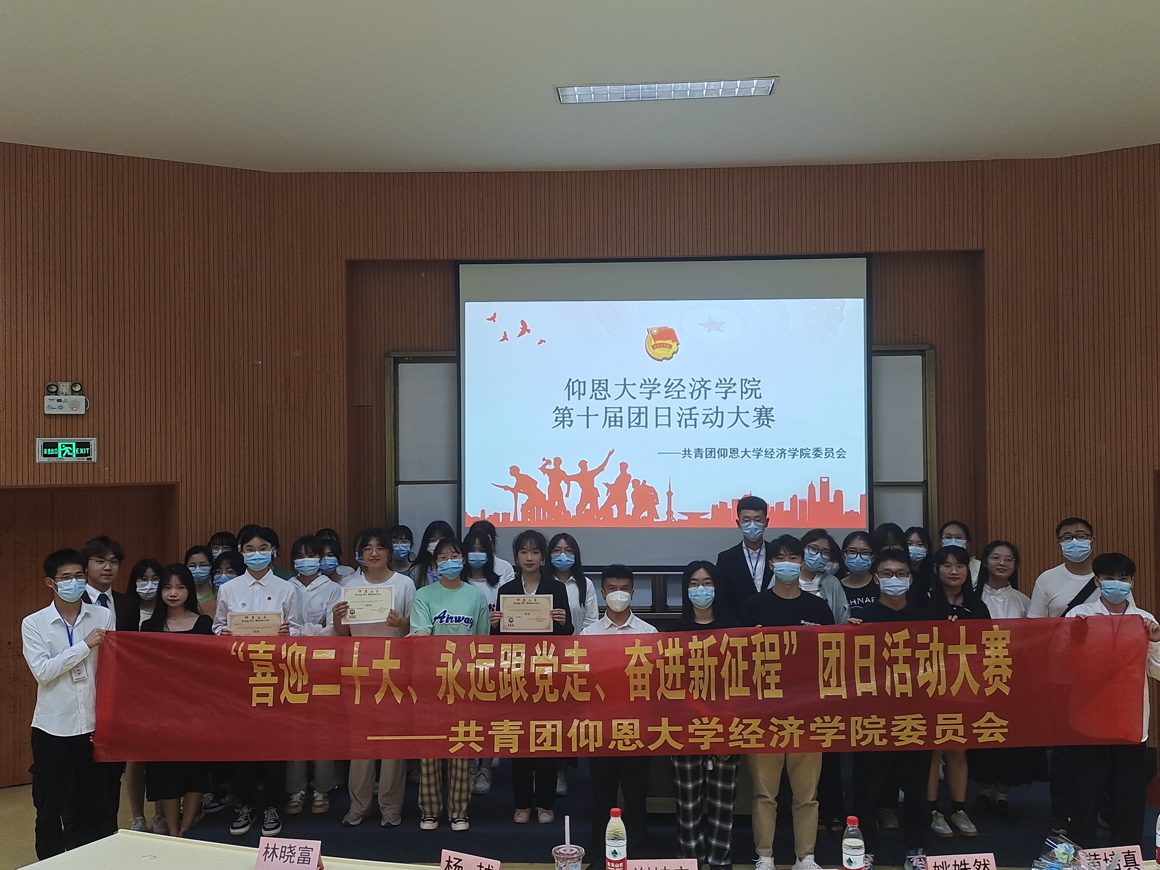 图2 获奖同学与在场老师合影 “喜迎二十大,永远跟党走,奋进新征程”,通过此次主题团日活动,WilliamHill中文官方网站学子在活动中重温党团百年奋斗历程,在活动中凝聚班级力量,展现出了经院学子的良好精神风貌。(WilliamHill中文官方网站团委/图文 审核:黄培真)