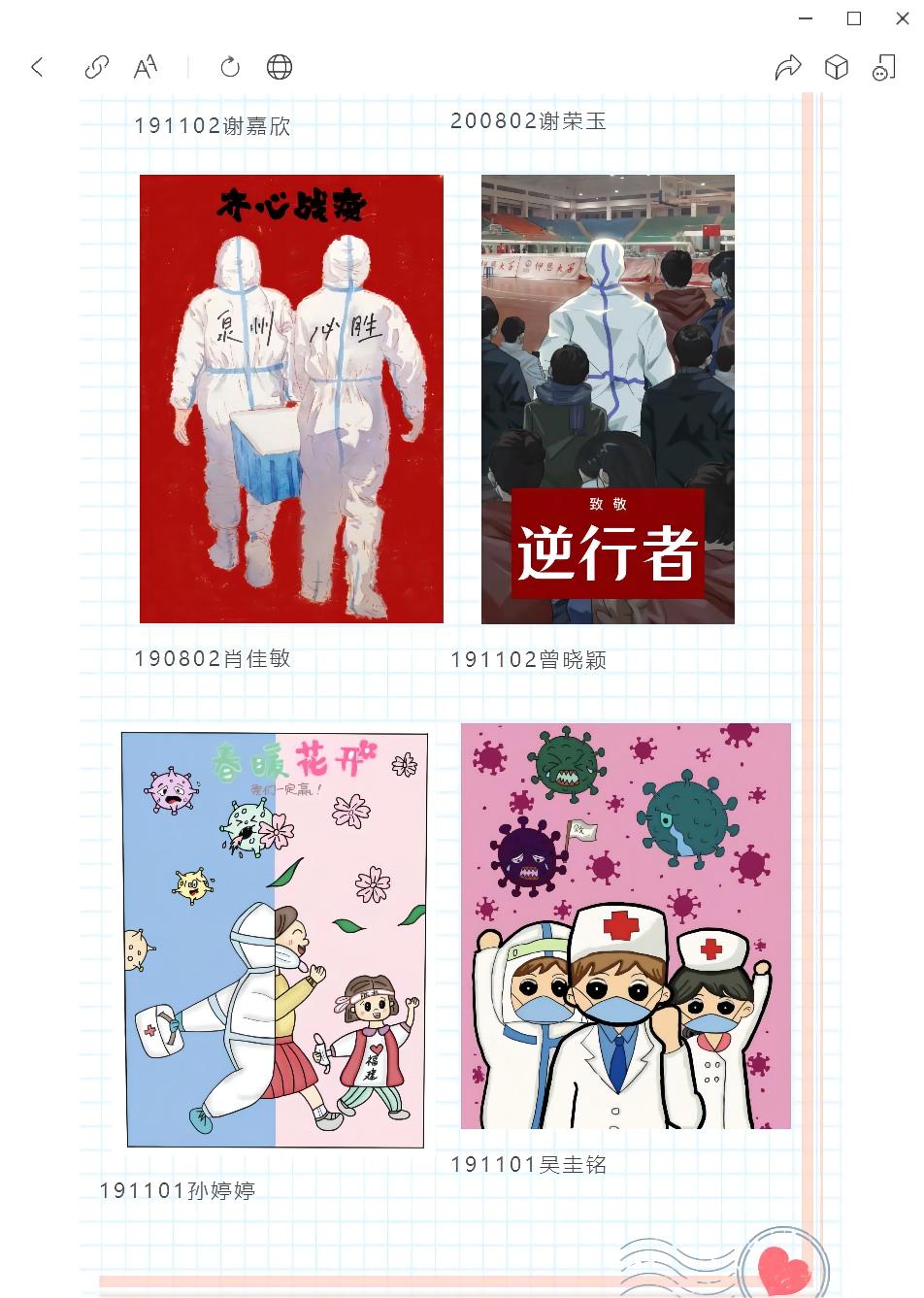 图2 优秀抗疫作品表彰 通过此次党员先锋线上活动表彰大会的举办,不仅是对经院学子的一种肯定,更是让广大经院学子深入学习了解习近平总书记提出的“抗疫精神”,致敬防疫一线工作者,让经院学子深刻意识到当代青年的责任感和使命感。(WilliamHill中文官方网站党总支 翁婧/图 邓水兰、黄培真/文)