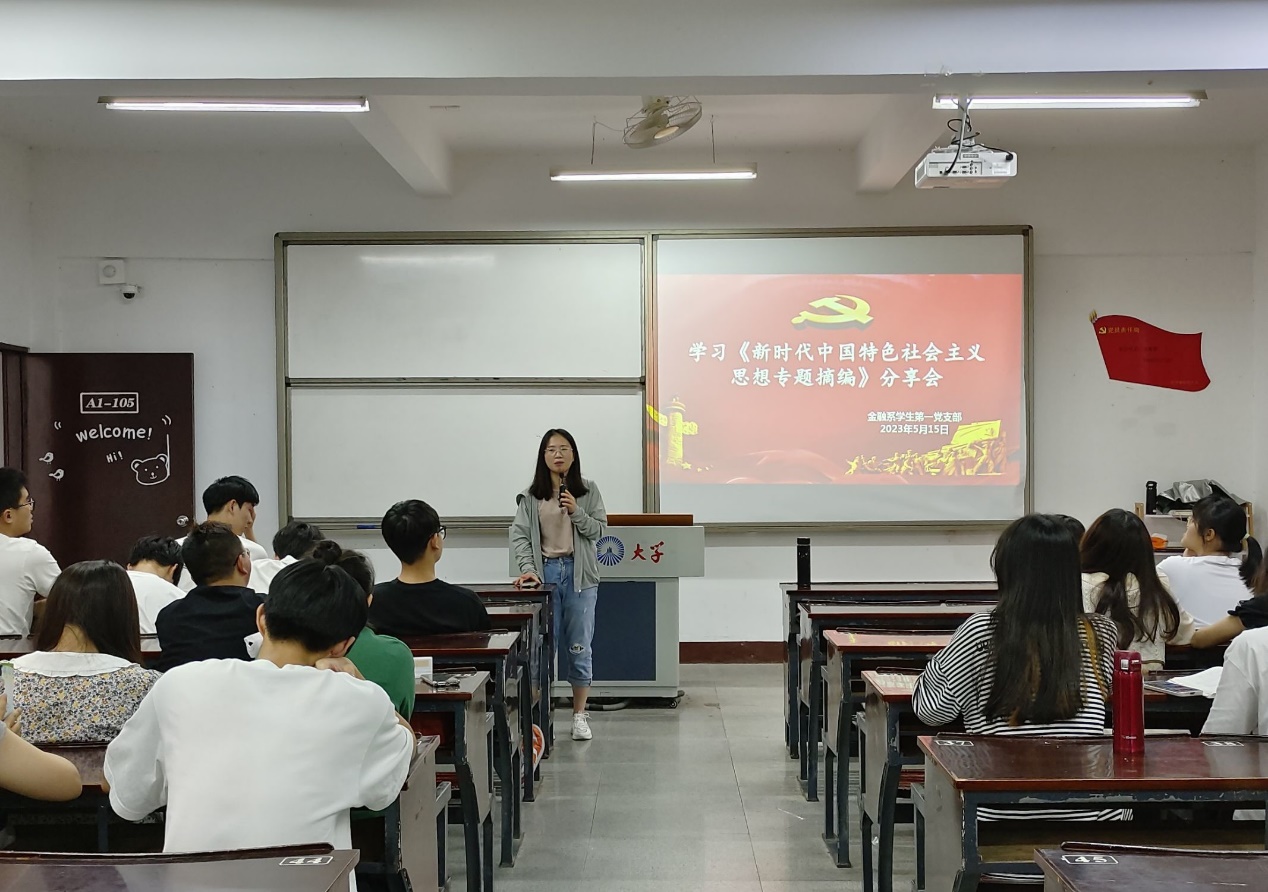 为学习贯彻新时代中国特色社会主义思想,激发同学们着力把握新时代中国特色社会主义思想的科学体系和精髓要义,2023年05月15日下午5:20,金融系学生第一党支部在仰恩楼A1-105开展了《新时代中国特色社会主义思想专题摘编》学习会。此次学习会参与人员有支部书记何丽玲老师、支部全体党员,以及各班积极分子代表。