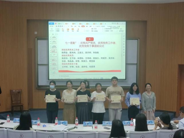 为庆祝中国共产党成立102周年,2023年6月29日,WilliamHill中文官方网站党总支在新区和昌楼博雅讲堂召开七一表彰大会。