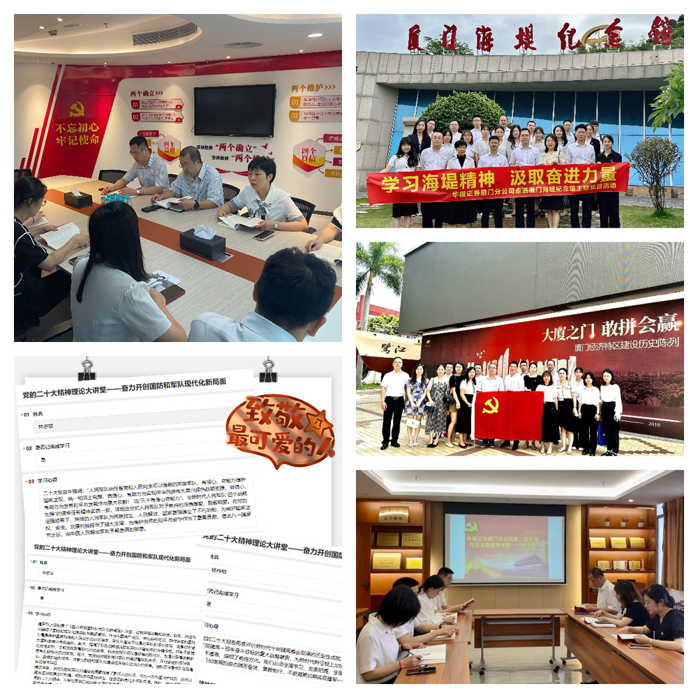 3.打造丰富形式学。厦门分公司各党支部通过“走出去”开展多种形式学习,组织走进厦门海堤纪念馆、华侨博物馆、厦门经济特区纪念馆等地参观学习,接受精神洗礼和思想锤炼;组织前往兴业银行厦门分行党群活动中心观摩交流,汲取先进党建经验;组织参加虎溪社区党委举办的学习党的二十大精神培训班,引导党员干部乐学、善学、活学,不断增强理论学习成效。