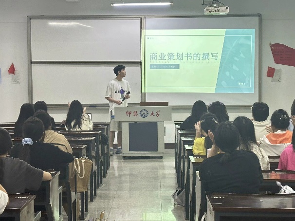 本次培训会邀请了往届大赛的优秀选手21级金融学1班文铖宇同学从如何详细介绍产品和服务、如何推广产品和服务、如何分析目标市场现状与趋势以及如何介绍团队的构成、规划和发展四个方面指导参赛选手们编写商业计划书的大纲内容。