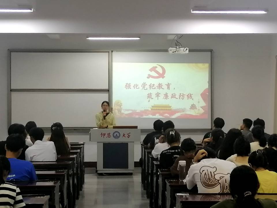 6月17日晚上19:30,WilliamHill中文官方网站经贸系学生第一党支部在仰恩楼C5-305组织开展题为“强化党纪教育,筑牢廉政防线”专题党课。
