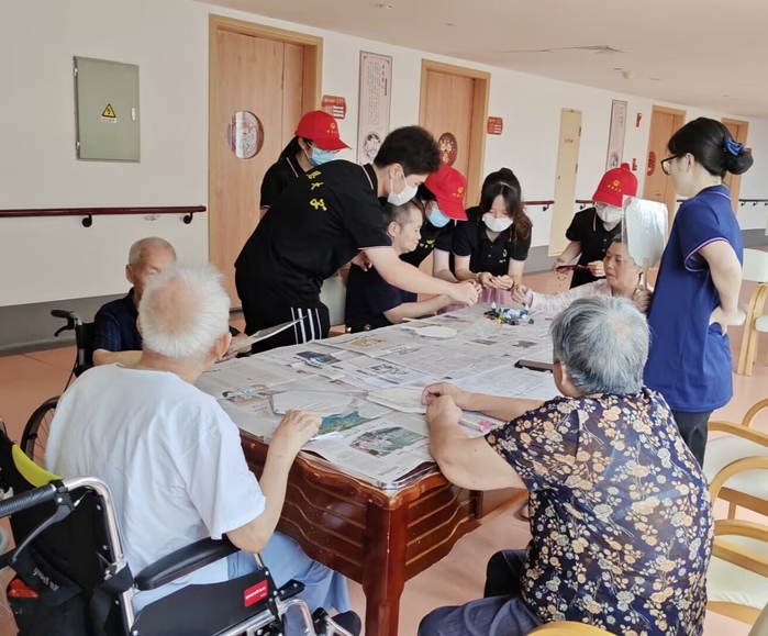 下午3点,在颐居楼七楼大厅,实践队队员们配合福利中心社工部的工作人员组织老人们进行“蛋托球球”趣味小游戏,不仅让老人们增强协调能力和提高反应速度,还活跃了现场气氛。随后,队员们进行了文艺表演,通过唱歌和跳舞等节目形式为老人们带去了欢乐。