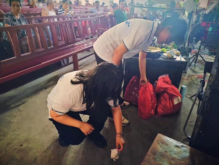 图4 队员们积极参与场地清扫工作