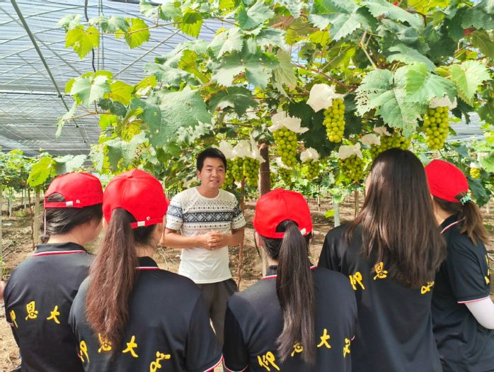 随后,实践队来到葡萄园种植基地,实地考察了葡萄的种植、管理和采摘等过程。村民们不仅重视葡萄的产量和品质,还注重生态环境的保护和农业经济的可持续发展。与基地负责人交流后,实践队了解到葡萄产业的发展现状和未来发展规划。葡萄产业作为水南村的特色产业,对于促进当地农村经济的发展、提高农民收入具有重要意义。