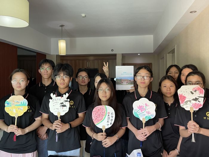 乡野绘扇,绮梦凝香。活动现场,摆放着整齐的团扇和丰富多样的绘画工具。队员们紧扣河流与乡村的主题,全神贯注于自己的作品,以青山绿水为背景,力求将心中最美的乡村景色通过扇子涂鸦完美呈现。经过一段时间的精心绘制,一把把风格各异、充满乡村特色的扇子逐一完成。