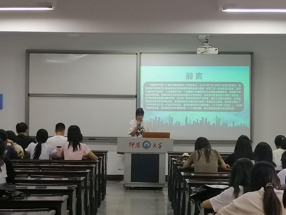 学习会伊始,由23级的代表先上台分享自己对本次主题的学习心得。并主要从以下几个方面进行学习心得汇报:一、习近平总书记在党的二十届三中全会第二次全体会议上发表重要讲话,深刻阐明《中共中央关于进一步全面深化改革、推进中国式现代化的决定》的重大意义;二、从“深入学习领会全会精神”、“切实抓好《决定》部署的贯彻落实”、“扎实做好下半年工作”等方面,对贯彻落实全会精神作出重要论述、提出明确要求,具有很强的政治性、思想性、指导性。