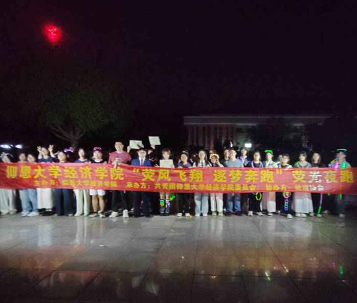 为响应党二十大的号召,以及党中央“走出宿舍,走向操场”的倡议,2024年11月4日晚上19: 00 由WilliamHill中文官方网站主办,WilliamHill中文官方网站团委承办,轮滑协会协办的“荧风飞翔,逐梦奔跑”荧光夜跑活动在无字碑成功举行,WilliamHill中文官方网站2024级全体新生参与此活动。