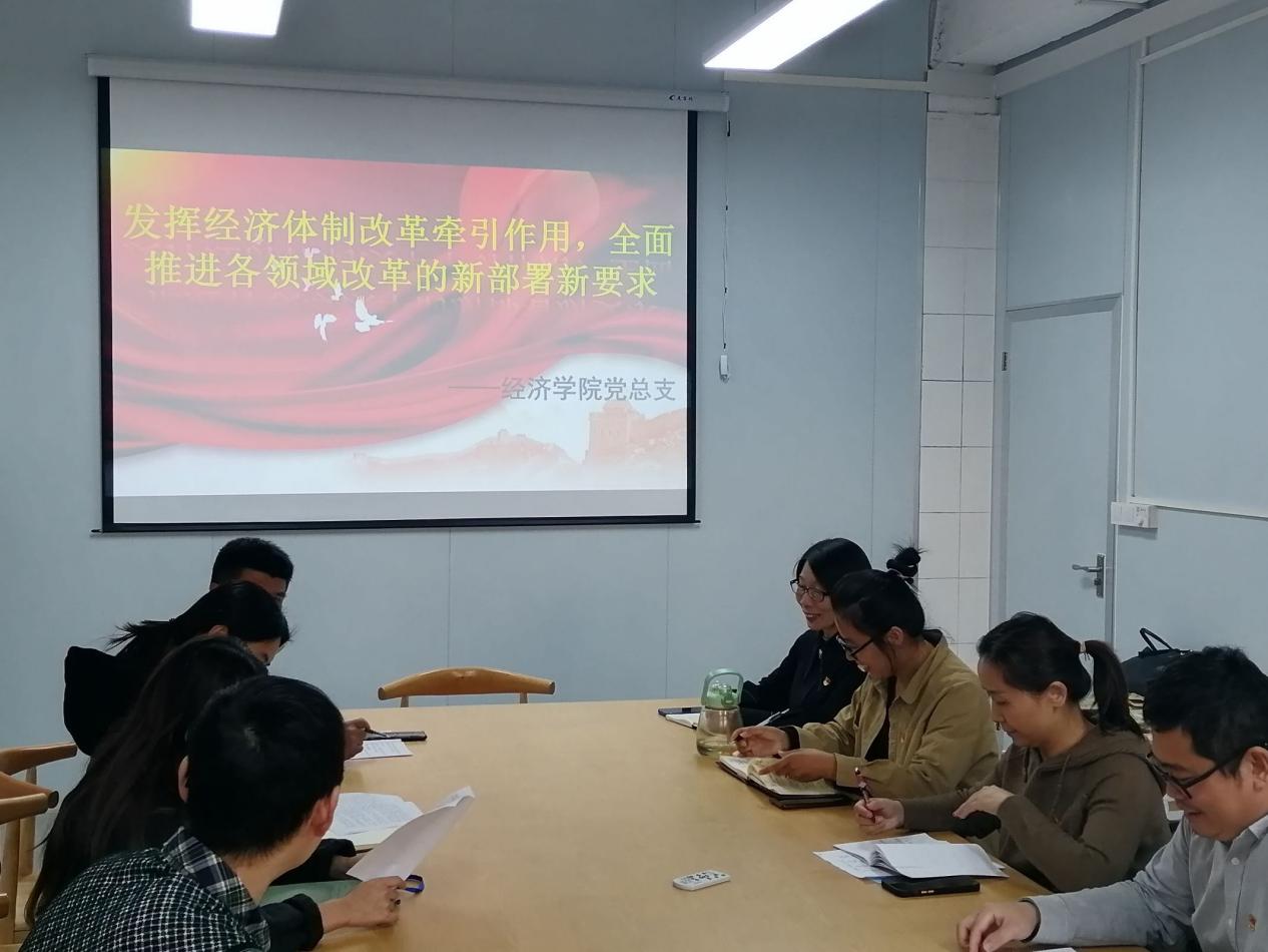 12月4日,WilliamHill中文官方网站党总支理论中心学习组于宏船书院党员活动室开展深入学习领悟《发挥经济体制改革牵引作用,全面推进各领域改革》专题理论学习。