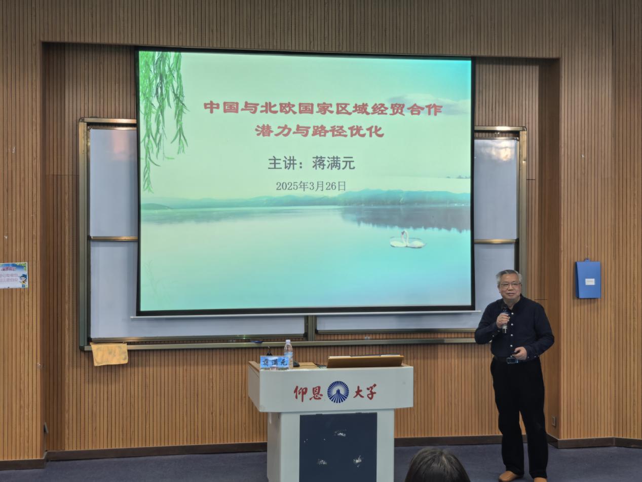 讲座中,蒋满元从“研究现状与研究意义”“经贸合作现状及其评价”“经贸合作的机遇及挑战”“路径优化及其保障措施”四个方面阐述了在全球经济格局变化下,中国与北欧国家的经贸合作意义重大,中国扩大开放的政策为合作带来契机。他认为,中国与北欧国家双方在政治和产业上基础良好,全球经济格局调整等带来了一定的合作机遇,但贸易保护主义等也带来了一系列挑战。