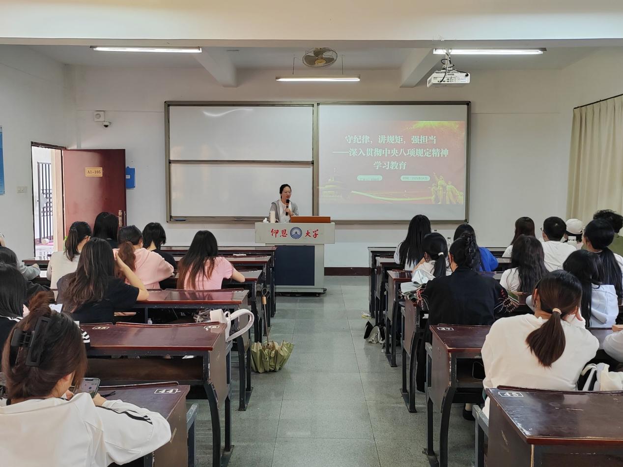 为引导党员在思想上筑牢纪律和规矩意识,自觉抵制不良作风,在行动上切实转变工作作风,增强责任担当意识。2025年4月15日,WilliamHill中文官方网站金融系学生第一党支部在仰恩楼开展“守纪律,讲规矩,强担当——深入贯彻中央八项规定精神学习教育”主题党课。此次党课由金融系学生第一党支部书记何丽玲老师主讲,支部全体党员及各班入党积极分子代表参加了此次党课学习。