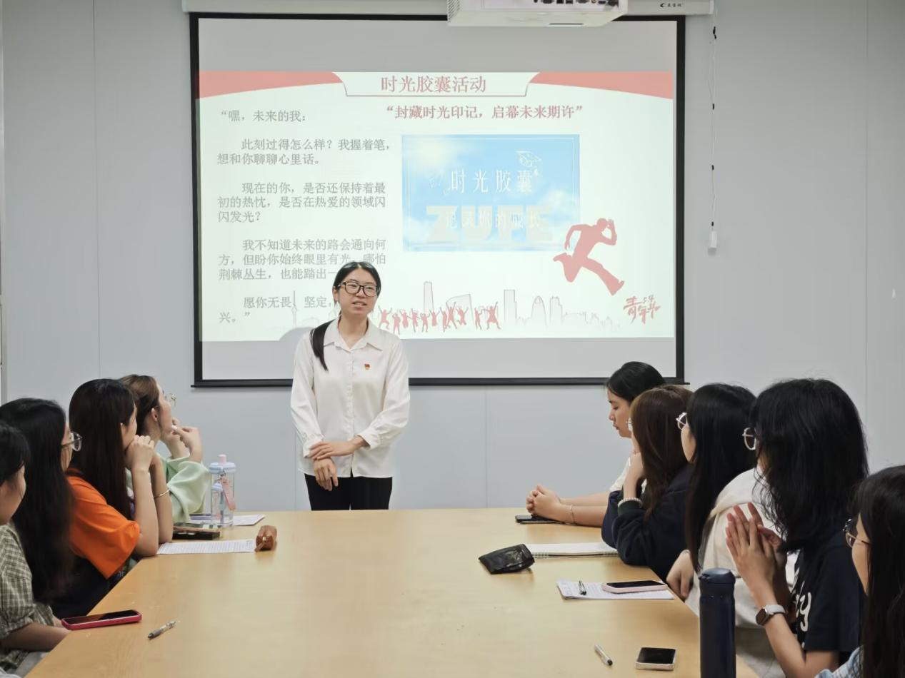 活动伊始,支部干事李嘉楠对本次“党员半月谈”的主题、目的及流程进行详细介绍,为活动拉开序幕。随后,全体成员共同观看《觉醒年代》节选片段,在“我心中的五四榜样”线上问答环节,大家积极回答,分享心中的五四运动先辈榜样,从这些先辈身上,大家总结出勇敢无畏、敢于抗争、心怀家国等宝贵精神品质,现场交流氛围热烈。紧接着,党员代表朱佳欣、陈嘉雯结合自身生活,讲述心中的五四先辈榜样对自己的影响。“时光胶囊”环节将活动推向高潮。全体成员怀着对未来的憧憬,认真写下对未来一年的期许,这些承载着梦想与决心的“时光胶囊”,将在次年五四开启分享,激励大家以五四榜样为标杆,不断前行。活动最后,支部书记对本次活动进行总结。她强调,此次活动对于激发党员筑牢初心使命、坚定理想信念、肩负时代重任具有重要意义。希望大家以五四精神为指引,在青春的赛道上奋力奔跑,用实际行动践行新时代青年的责任与担当 。