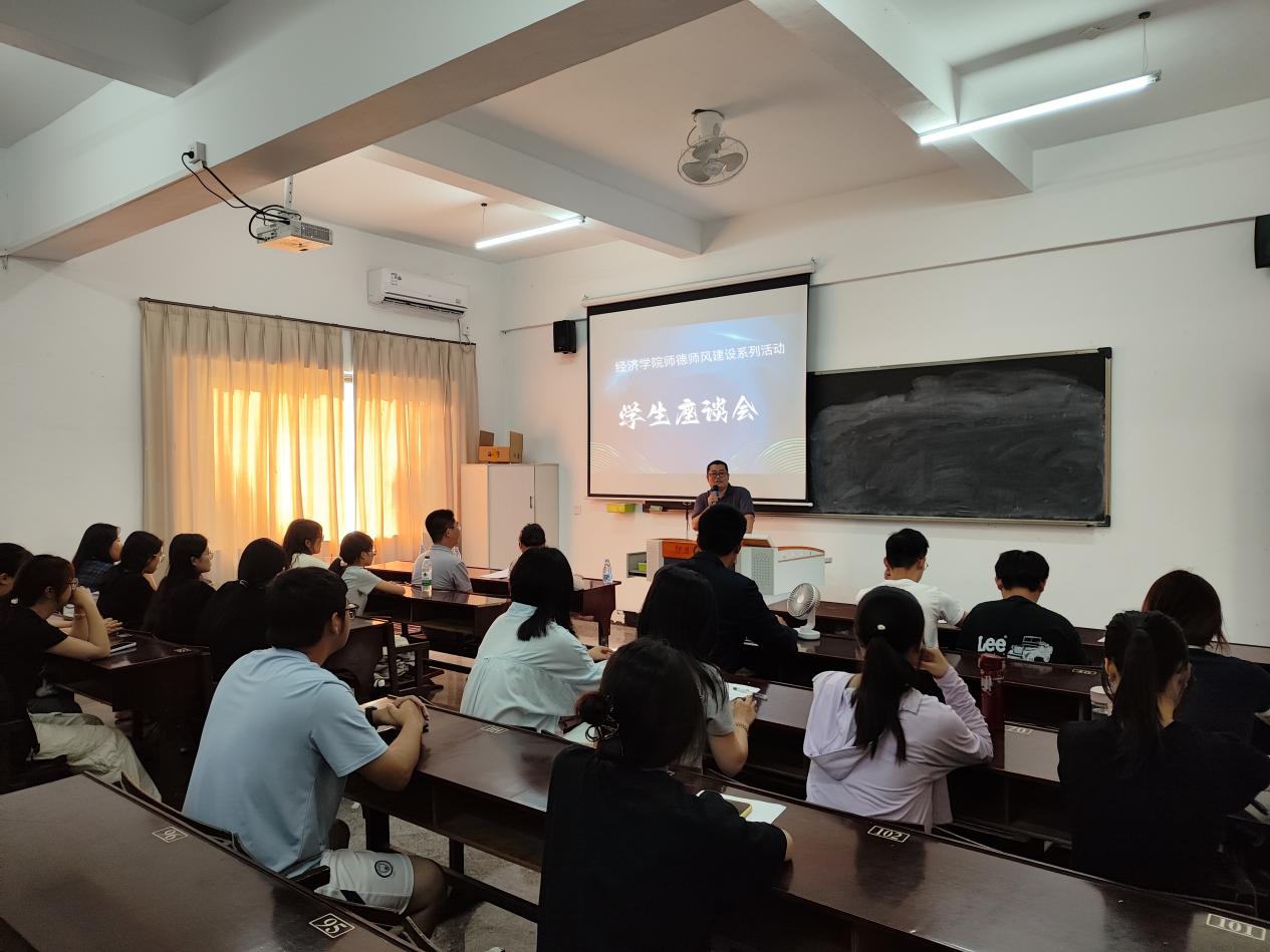在交流环节,来自不同年级和专业的学生代表们积极发言,分享了他们在学习生活中对教师师德师风的真切感受。学生表示,在日常教学中,老师们总是认真备课、精心授课,将抽象的经济学理论知识讲解得深入浅出,让他们能够轻松理解;而且经常利用课余时间为同学们答疑解惑,耐心细致,从不厌烦。尤其在专业实习期间,老师们亲自带领他们深入企业调研,指导他们完成调研报告,让他们在实践中巩固了所学知识,也深刻体会到了理论与实践相结合的重要性。