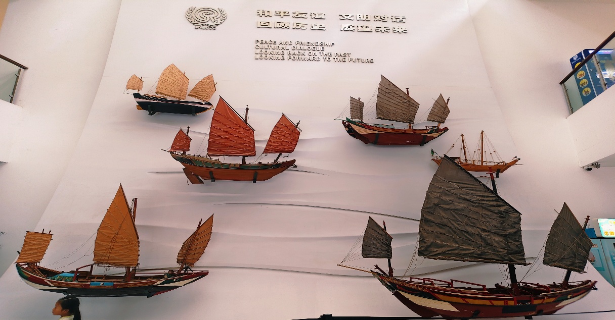 图2 泉州海外交通史博物馆大厅的福船模型展示墙