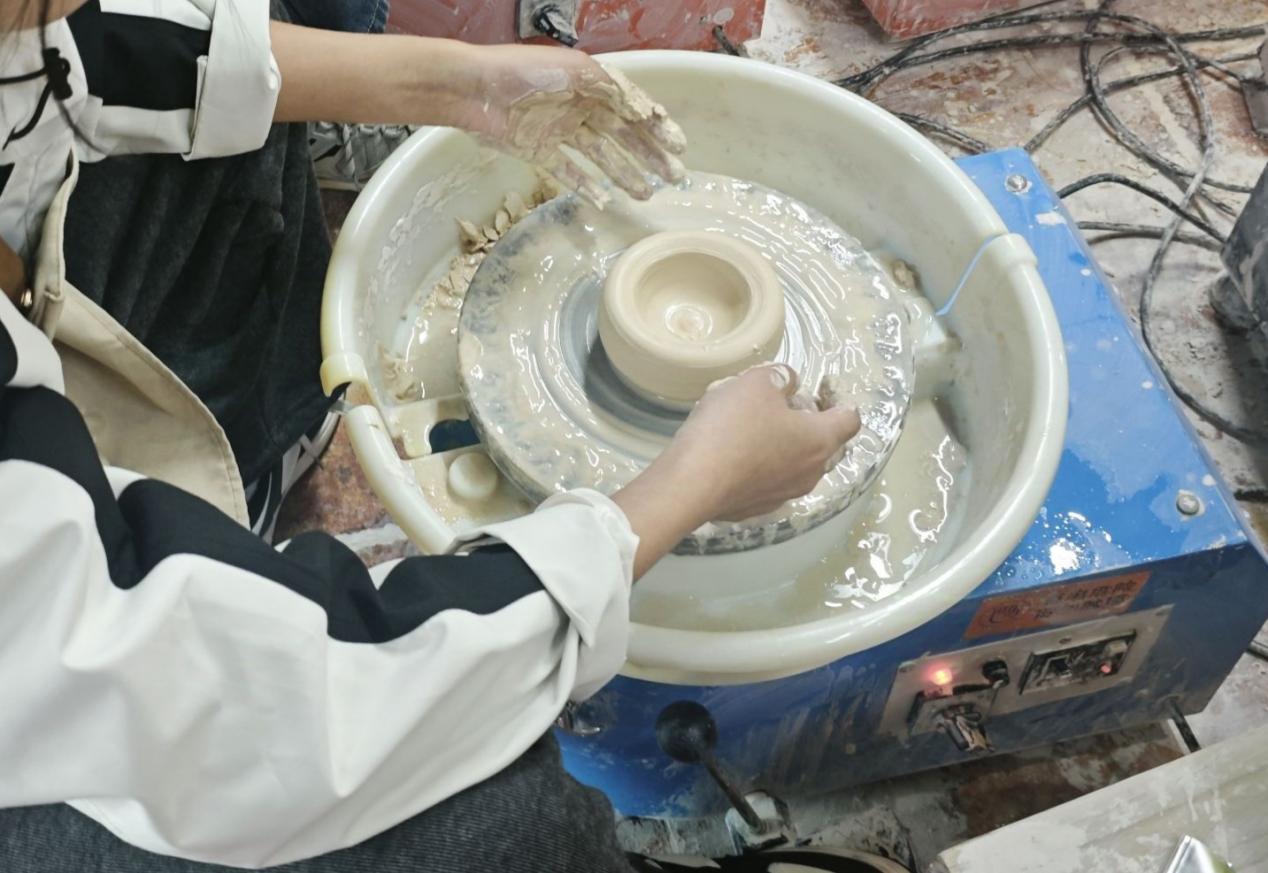 图2 实践队成员体验手拉坯活动